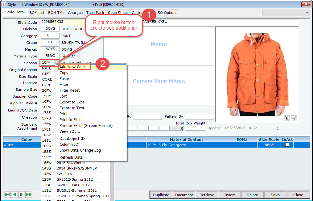 Additional drop down item can be added by using “Right mouse click” feature against drop down menu