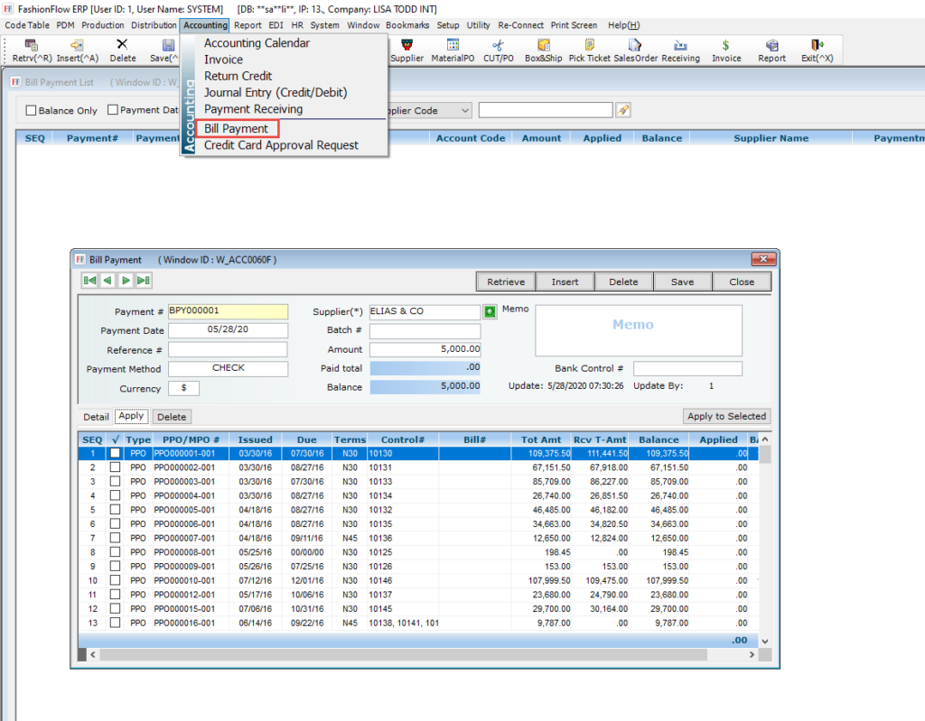 This is the Bill Payment module where you can record your bill payment history so your “Open Bill” report balance is being reduced
