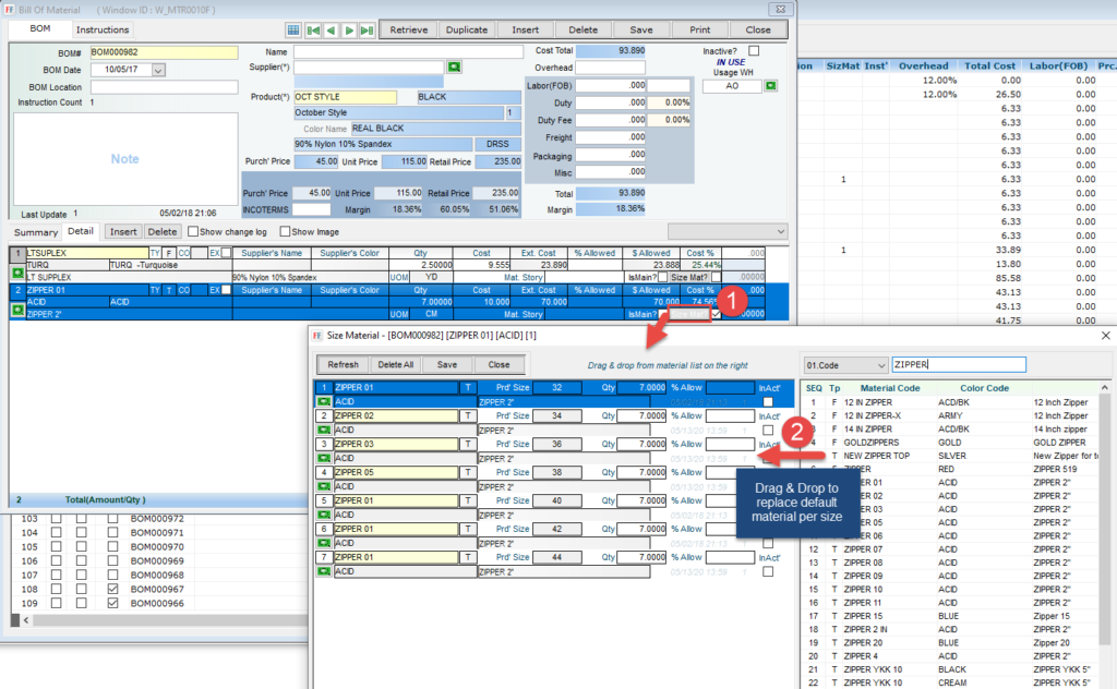 Style design, Bill of Material (BOM)