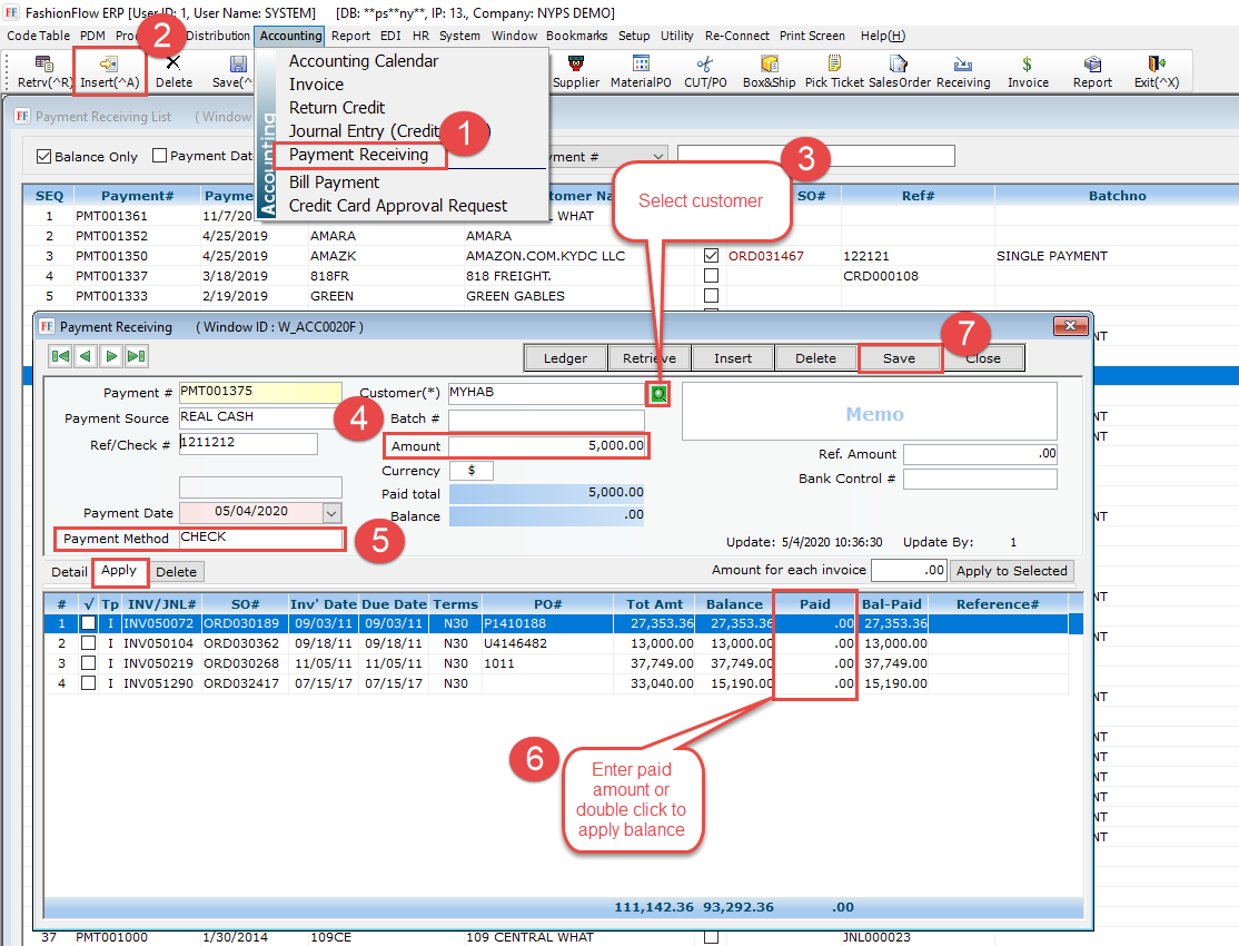 - Select “Payment Receiving” menu