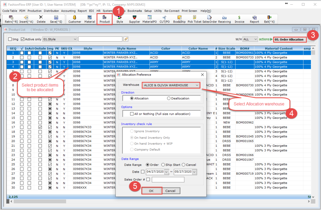2. Select Product items to be allocated for open orders