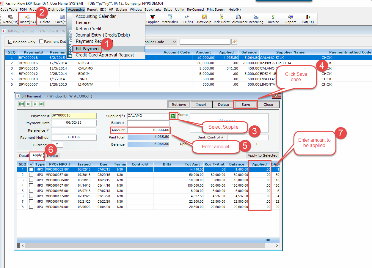 - Enter amount paid for supplier